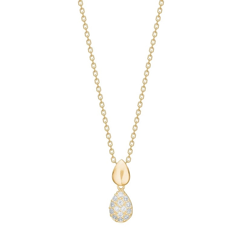 Siersbøl - 8kt. Goldanhänger mit doppeltem Tropfen und zirkonia inkl. verg. Kette