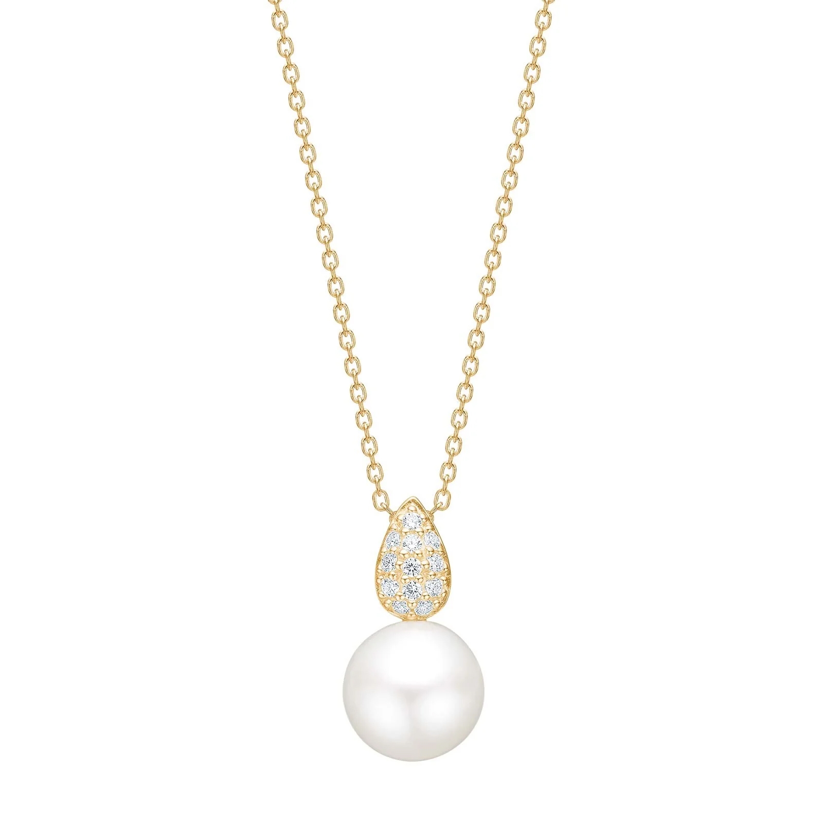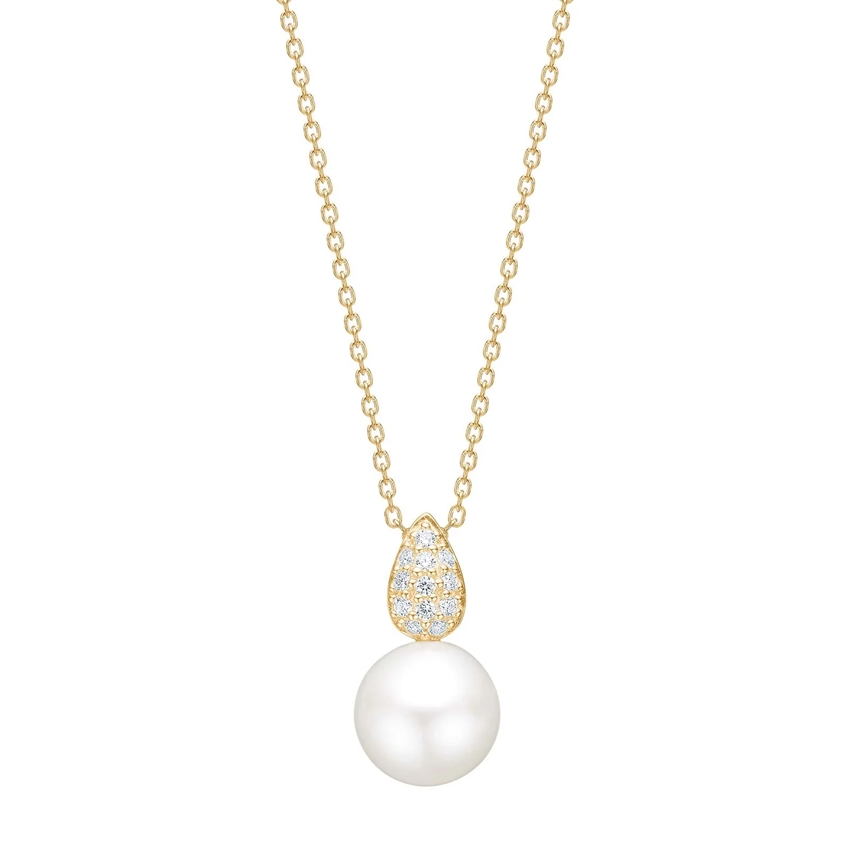 Das Design ist inspiriert von der weichen Tropfenform, die dem Anhänger einen femininen und zeitlosen Touch verleiht. Die zirkonia sind sorgfältig platziert und betonen die Facetten des Schmucks mit einem dezenten Spiel im Licht, das Eleganz verleiht, ohne die Perle in den Hintergrund zu drängen. Die Kombination aus der warmen Goldfarbe, dem klaren zirkonia und der klassischen Perle schafft ein Schmuckstück, das zu vielen verschiedenen Stilen passt.