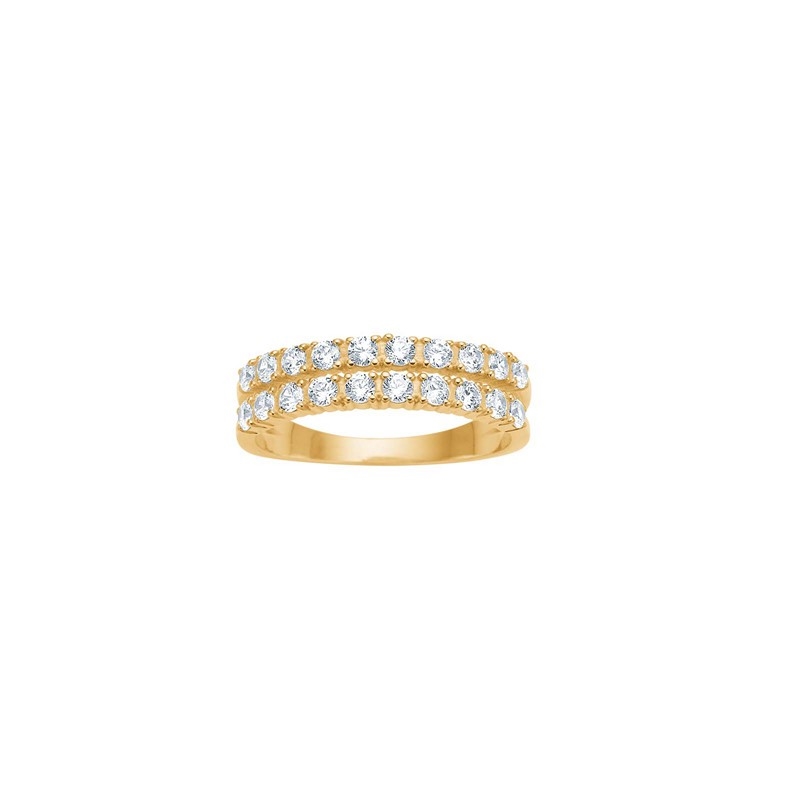 Die klaren zirkonia-Steine sind dicht und gleichmäßig platziert, sodass sie das Licht aus mehreren Winkeln einfangen und dem Ring ein lebendiges Spiel verleihen. Die Doppelreihe vermittelt die Illusion von zwei Ringen in einem, was das Schmuckstück auffälliger macht als einen klassischen Allianzenring, ohne dass es sich schwer oder dominant an der Hand anfühlt. Die glatte Ringschiene sorgt für einen angenehmen Sitz und macht den Ring den ganzen Tag über komfortabel zu tragen.
