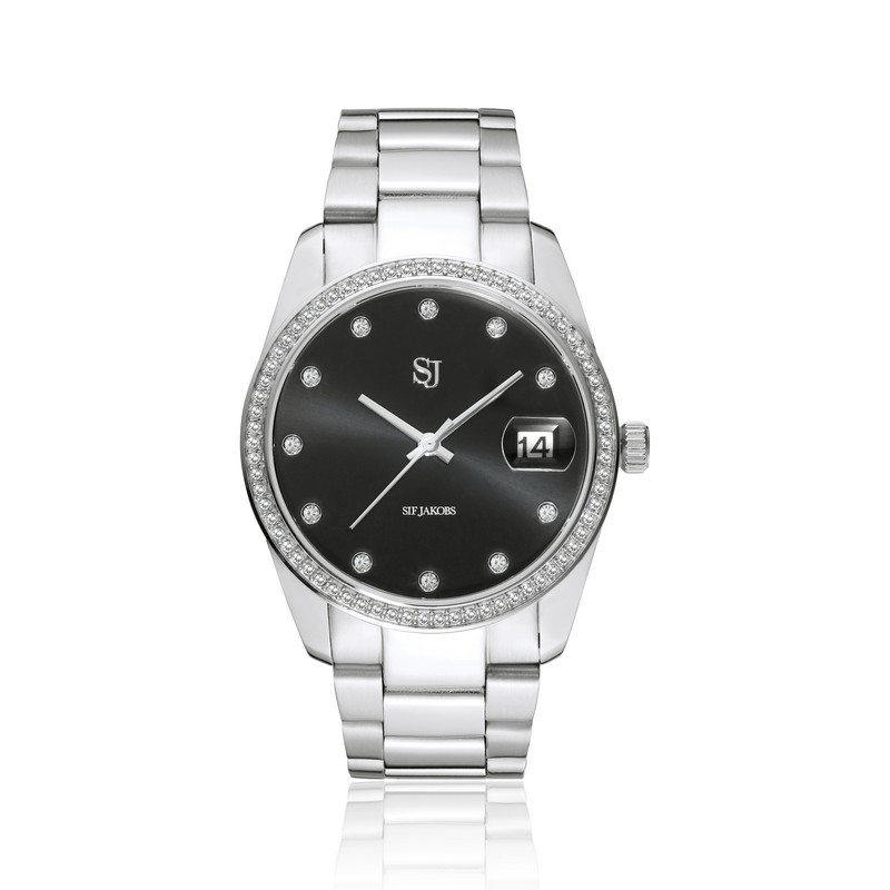 Die AURORA Uhr von Sif Jakobs ist mit ihrem schönen schwarzen metallischen und runden Zifferblatt mit weißen zirkonia und Datum unglaublich fein. Das Zifferblatt wird durch Saphirglas geschützt, was die Uhr besonders haltbar macht. Die Uhr ist bis zu 50 Meter wasserdicht und verfügt über ein Miyota Uhrwerk.