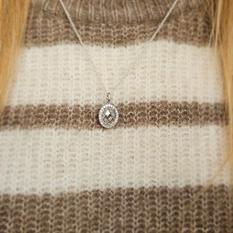Silber Anhänger mit zirkonia in Rosette und Silberkette