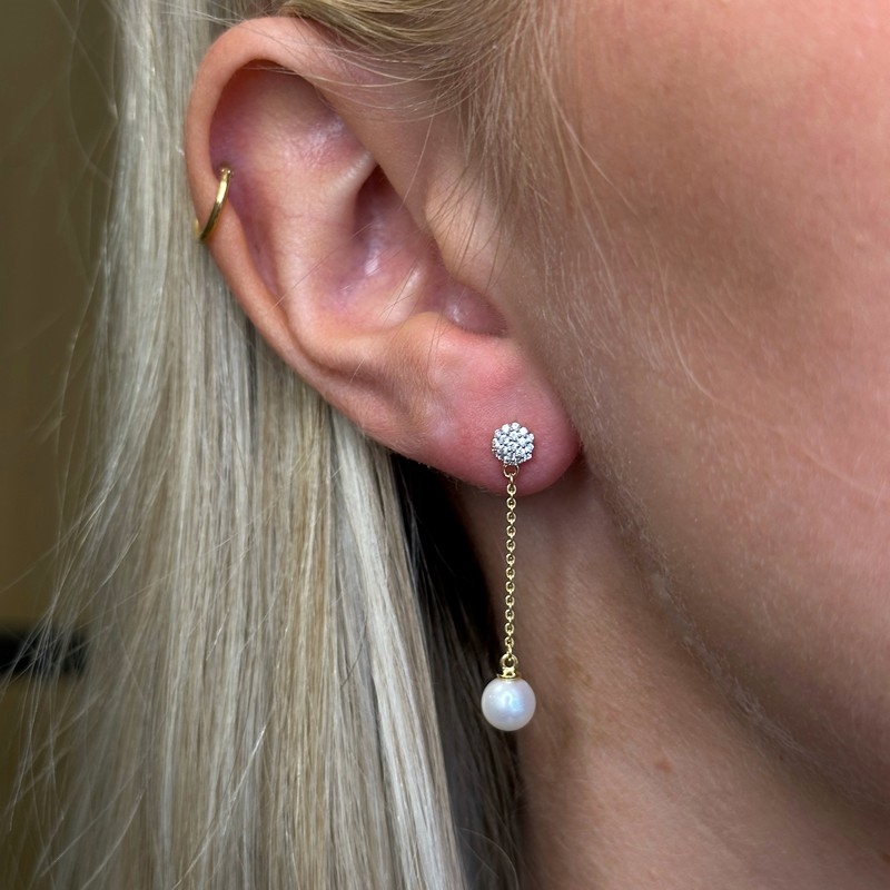 Perlenohrringe in 8 Karat Gold mit zirkonia Modell