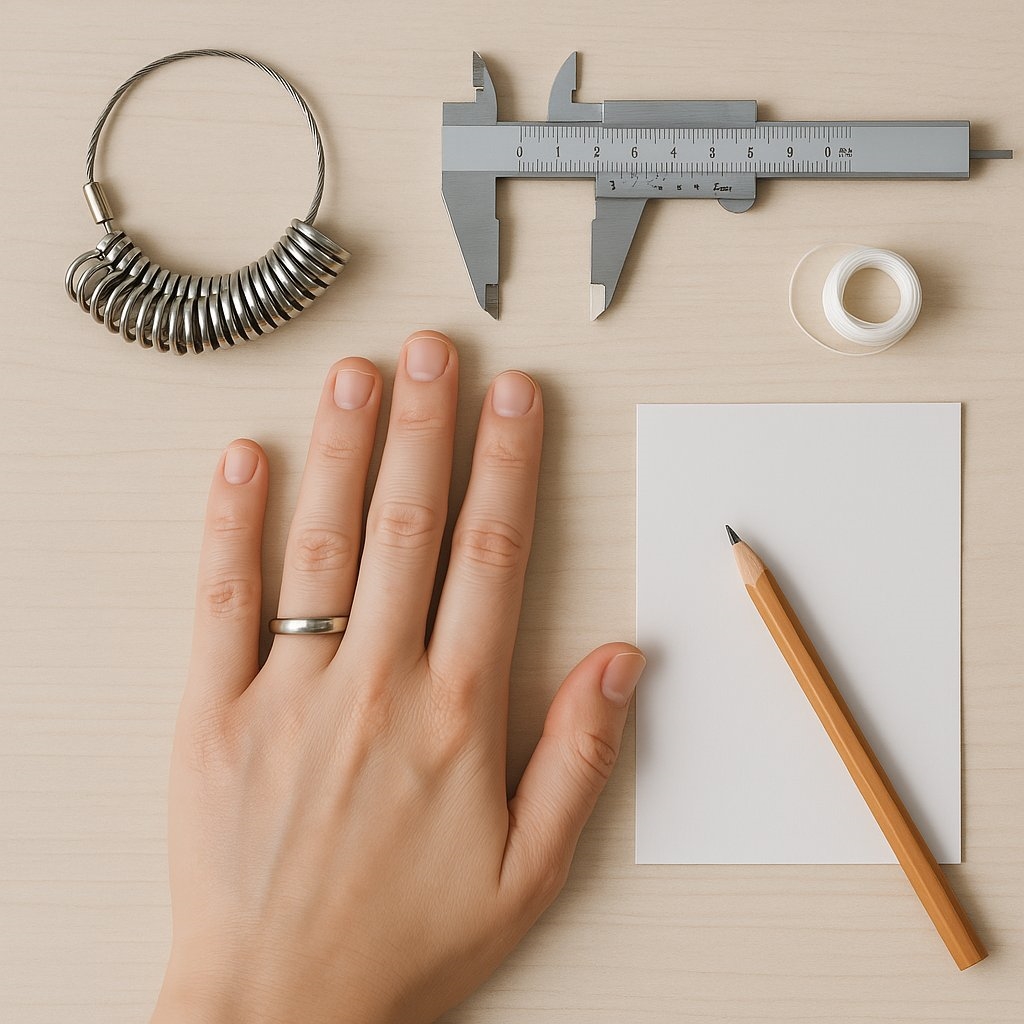 Eine der zuverlässigsten Methoden zur Messung der Ringgröße ist die Verwendung eines Ringmaßes. Dieses Werkzeug ist speziell dafür ausgelegt, eine genaue Messung des Fingerumfangs zu liefern, und das Ergebnis ist die direkte Ringgröße. Durch die Verwendung eines Ringmaßes können Sie sicherstellen, dass der bestellte Ring perfekt passt, was besonders wichtig ist, wenn der Ring später nicht geändert werden kann. Ringmaße sind einfach und schnell zu verwenden und geben Ihnen die Sicherheit, dass Ihre Messung korrekt ist.