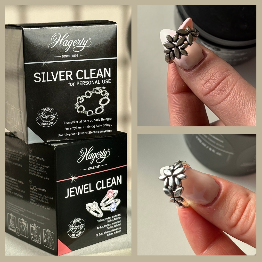 Hagerty Silver Clean legst du das Schmuckstück 5-10 Sekunden in die Flüssigkeit und spülst anschließend mit warmem Wasser nach. Trockne danach mit einem weichen Tuch, und wenn du langanhaltenden Glanz möchtest, kannst du vorteilhaft