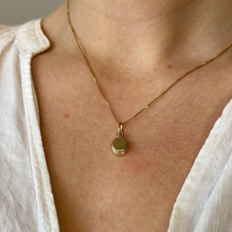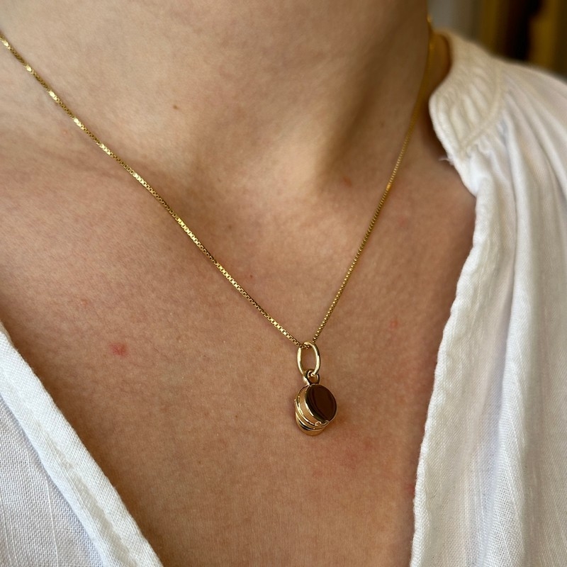 Der Anhänger und die Kette sind aus 18kt. vergoldetem 925 Sterlingsilber gefertigt. Der Anhänger misst ca. 10x10mm und die Kette ist 42+3cm lang.