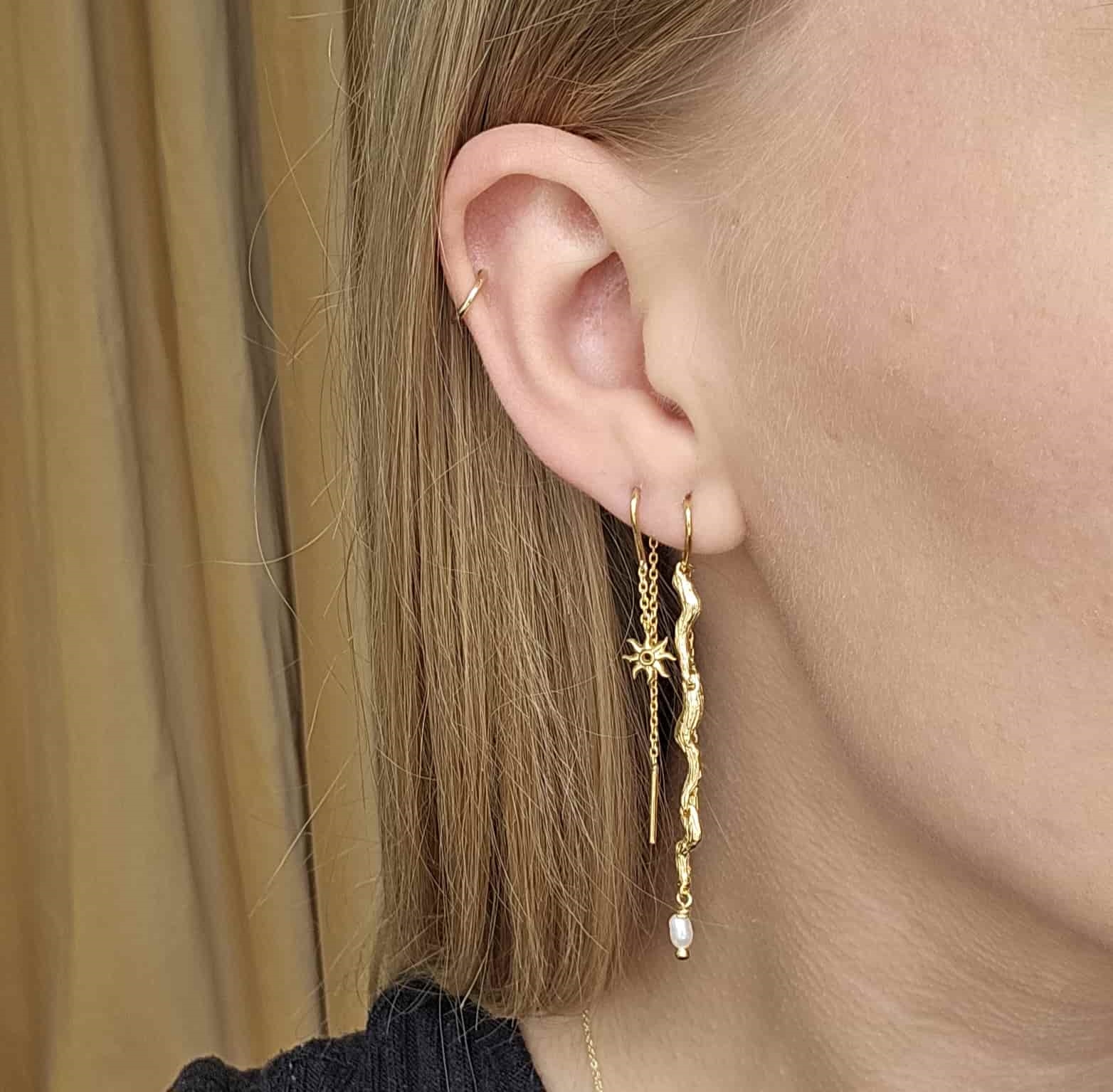 Lange Ocean Aura-Ohrringe in vergoldete silber von Studio Z Kombinieren Sie die langen Kettenohrringe mit Ohrringen aus der gleichen Serie, wenn Sie mehrere Löcher in Ihren Ohren haben.