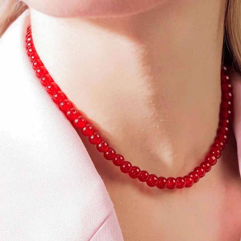 Die Halskette misst 37–42 cm und ist verstellbar, sodass sie leicht angepasst und gestylt werden kann, genau wie Sie es wünschen. Die glatten, runden Perlen verleihen der Kette einen klassischen und raffinierten Look, während die kräftige Farbe einen modernen Twist hinzufügt. Tragen Sie sie allein als zartes Statement oder kombinieren Sie sie mit anderen Ketten für ein cooles Layering.