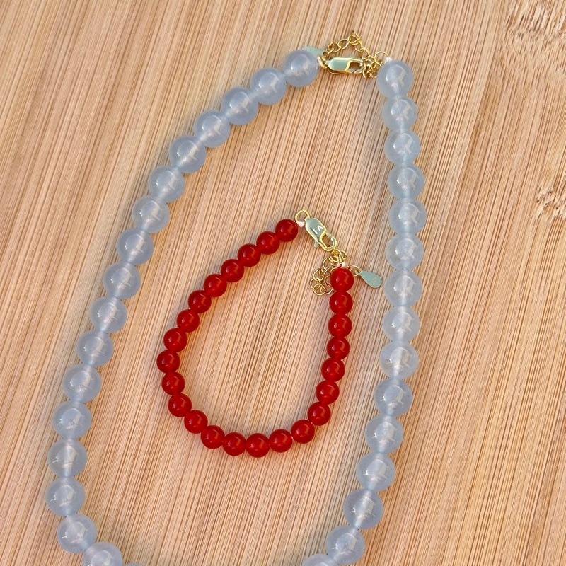 Diese Version der Candy Coral Lagoon Halskette ist mit größeren Perlen mit einem Durchmesser von 10 mm gestaltet. Die größere Größe verleiht der Halskette - oder dem Choker - einen chunkier und cooleren Look, der wirklich heraussticht. Gleichzeitig bewahrt das Schmuckstück die elegante Schlichtheit, die es leicht macht, es sowohl im Alltag als auch zu festlichen Anlässen zu tragen.