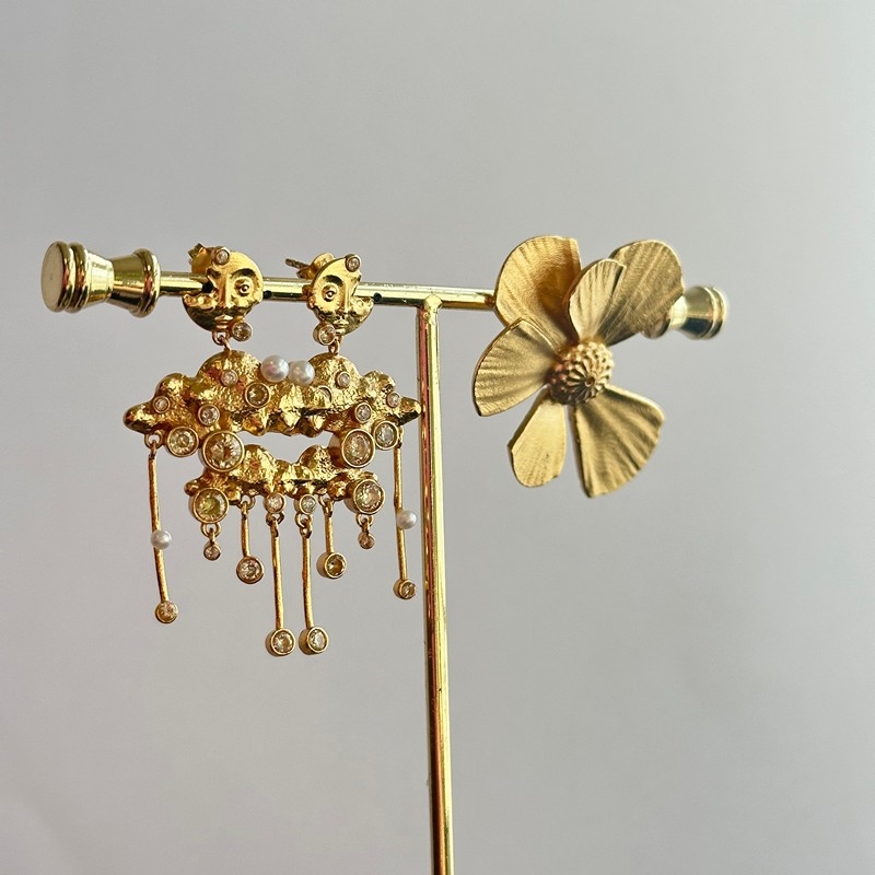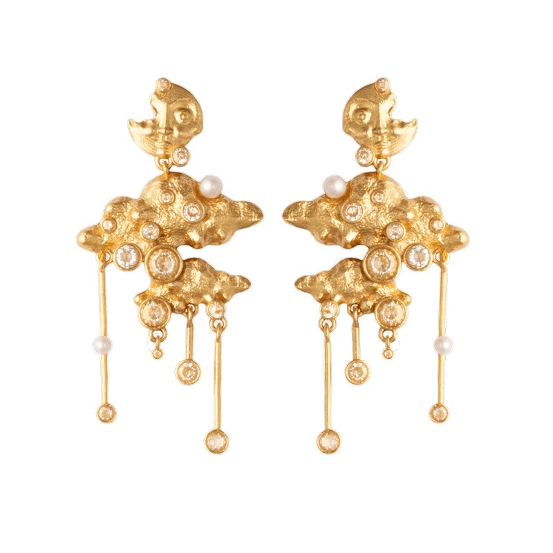 Die Cosmic Cascade Ohrringe von House of Vincent sind inspiriert von der Mystik der Nacht, der ruhigen Präsenz des Mondes und den funkelnden Sternen, die den Himmel hinter vorbeiziehenden Wolken erhellen. Das Design ist mit mehreren beweglichen Elementen gestaltet, die den Ohrringen einen lebendigen und dynamischen Ausdruck verleihen, bei dem das Licht immer wieder auf neue Weise eingefangen wird. Das Ergebnis ist ein Paar markanter Statement-Ohrringe, die wirklich Aufmerksamkeit auf sich ziehen.