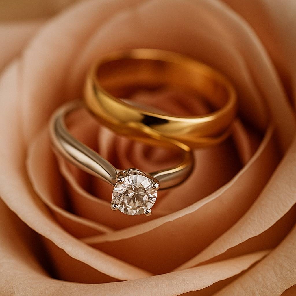 Der Brauch der Verlobungsringe stammt aus dem alten Ägypten und römischen Traditionen. Der Ehering hat ebenfalls tiefe Wurzeln, aber die Idee, einen Ringtyp für den Antrag und einen anderen für die Ehe selbst zu verwenden, wurde besonders im 19. und 20. Jahrhundert populär – stark beeinflusst durch das Marketing der Diamantenindustrie. 📜